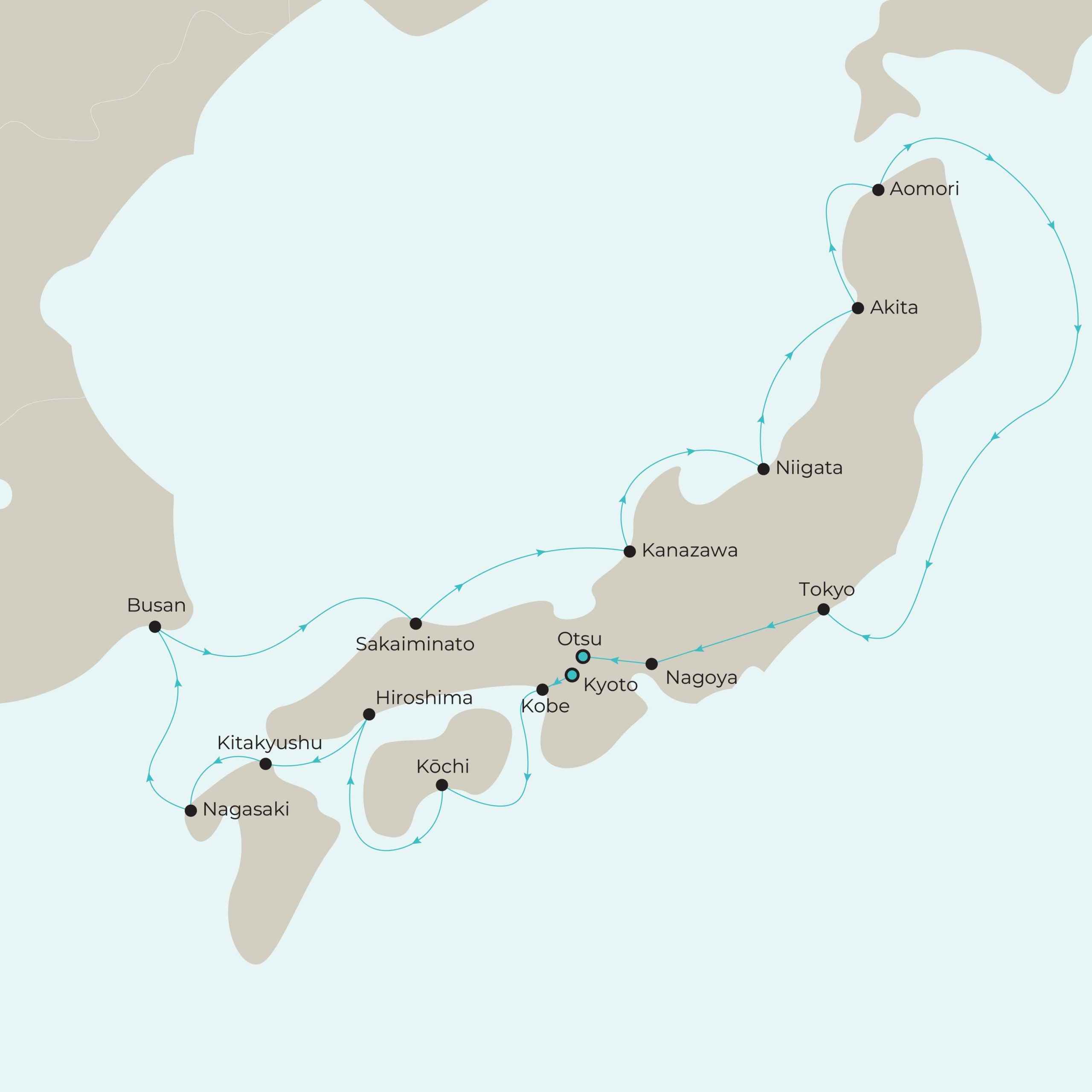- Overnight in port in Kobe and Tokyo